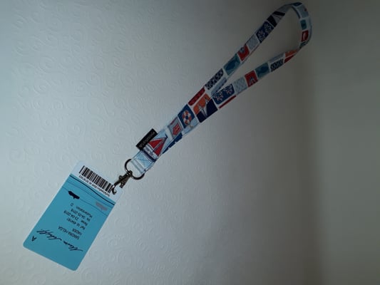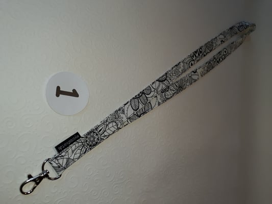 Die Bänder haben unten einen Karabiner, in den man Schlüssel, gelochte Karten (wie man sie auf dem Schiff erhält) oder eine Plastikhülle für einen Mitarbeiterausweis einhängen kann. Die Bänder sind maschinenwaschbar.